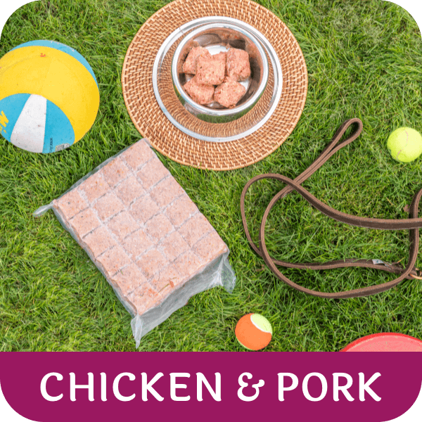 A little twist on our all time favourite chicken mix adds pork – a tasty protein that dogs just love. They’ll notice, and beg for more!